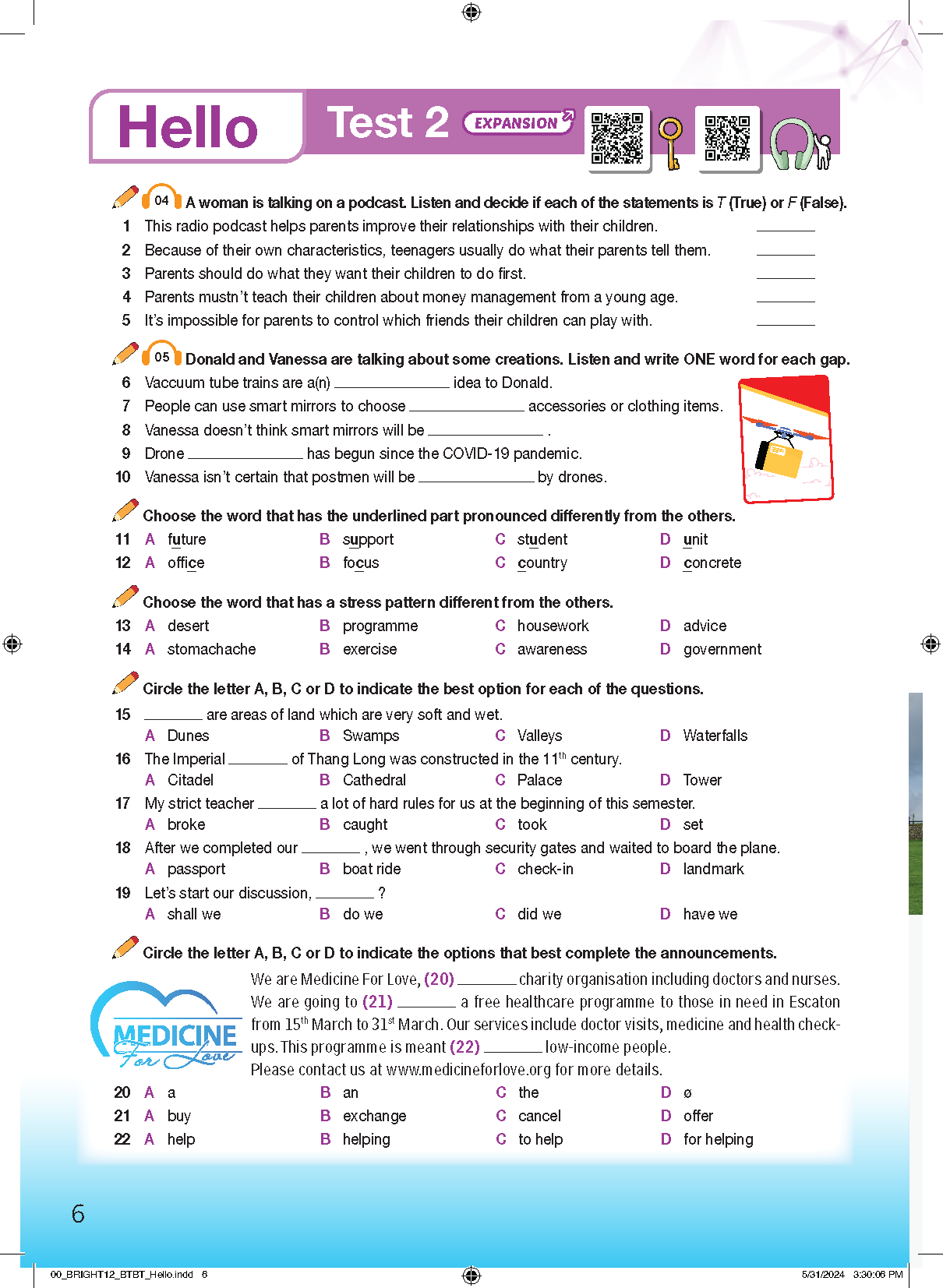 Tiếng anh 12 Bright| Bài tập bổ trợ unit 6 test 2 phần 1 @cô Lan tiếng anh