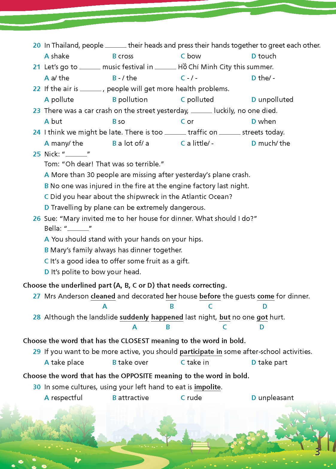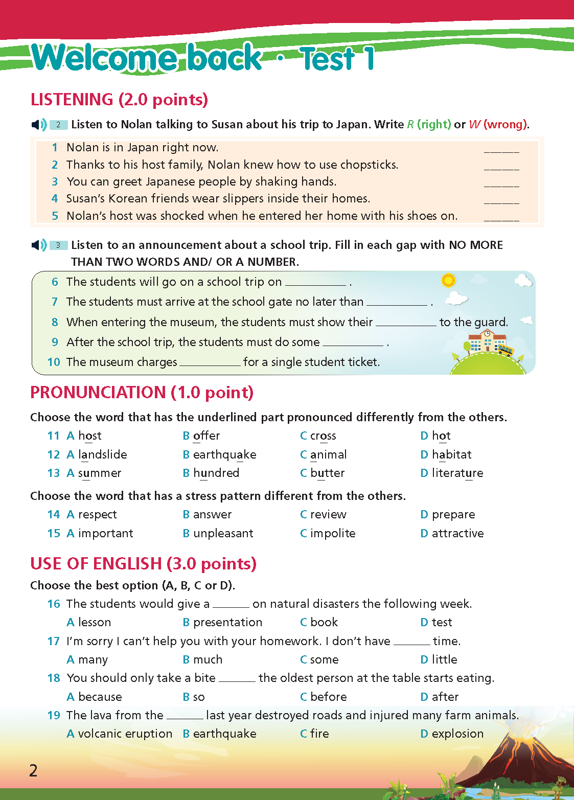 GIẢI SÁCH BỔ TRỢ TIẾNG ANH 9 RIGHT ON (WELCOME BACK) TEST 1 (PHẦN 1)