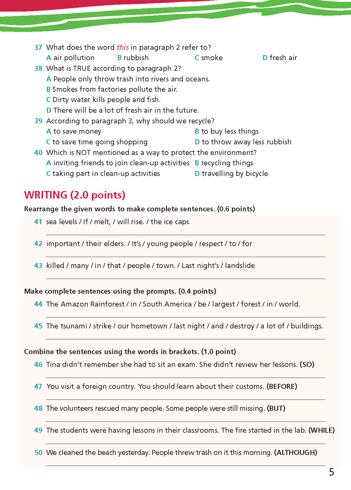 Bài Tập Tiếng Anh 9 Right On (WorkBook) Unit 5 Living Environment (5E Grammar) Trang 44