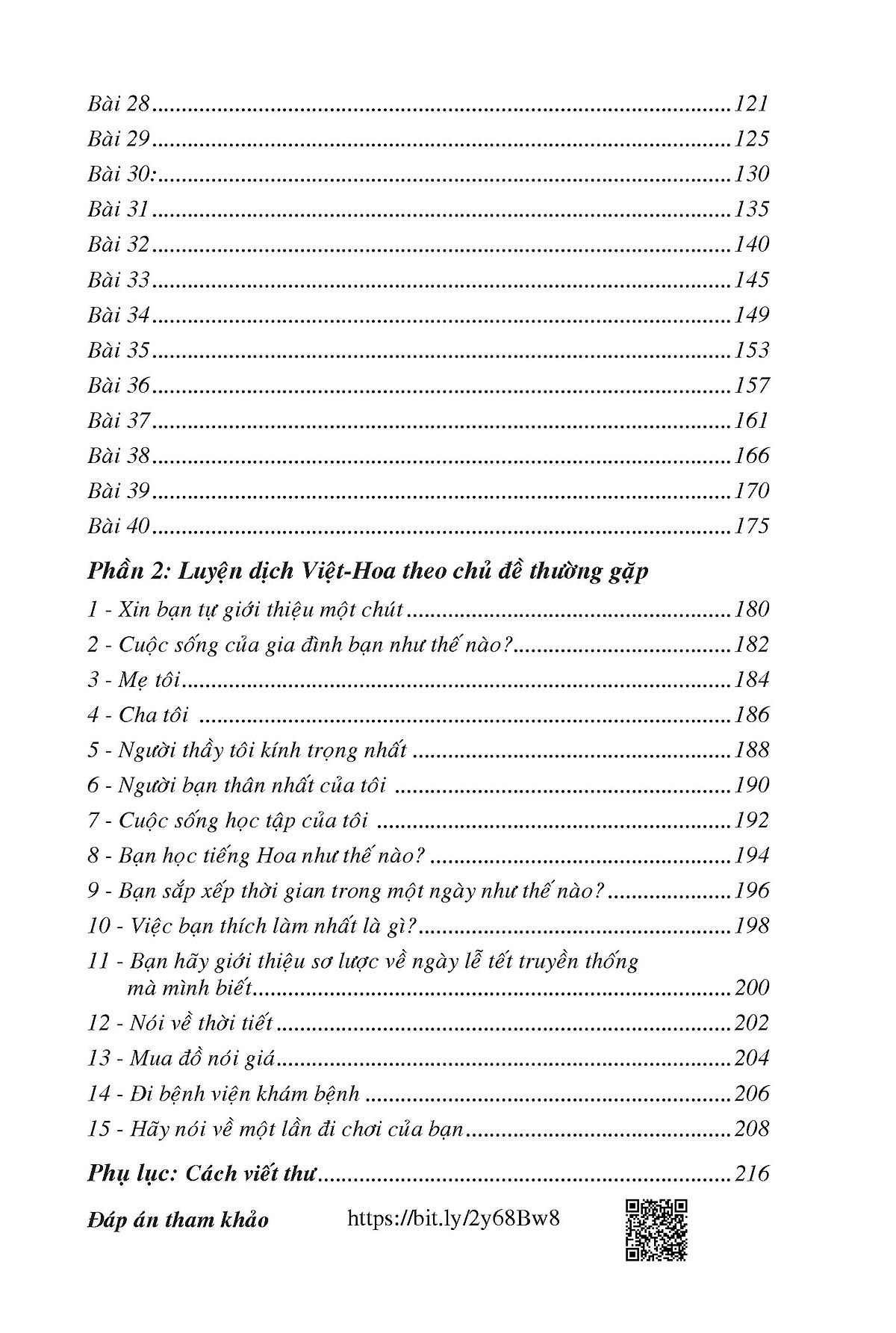 Mua tại TiktokBài tập luyện dịch Việt - Hoa hỗ trợ việc rèn luyện kỹ năng dịch từ tiếng Việt sang tiếng Hoa. Sách chia thành hai phần: phần "Luyện dịch Việt - Hoa" và phần "Luyện dịch Việt - Hoa theo chủ đề luyện thi chứng chỉ A".