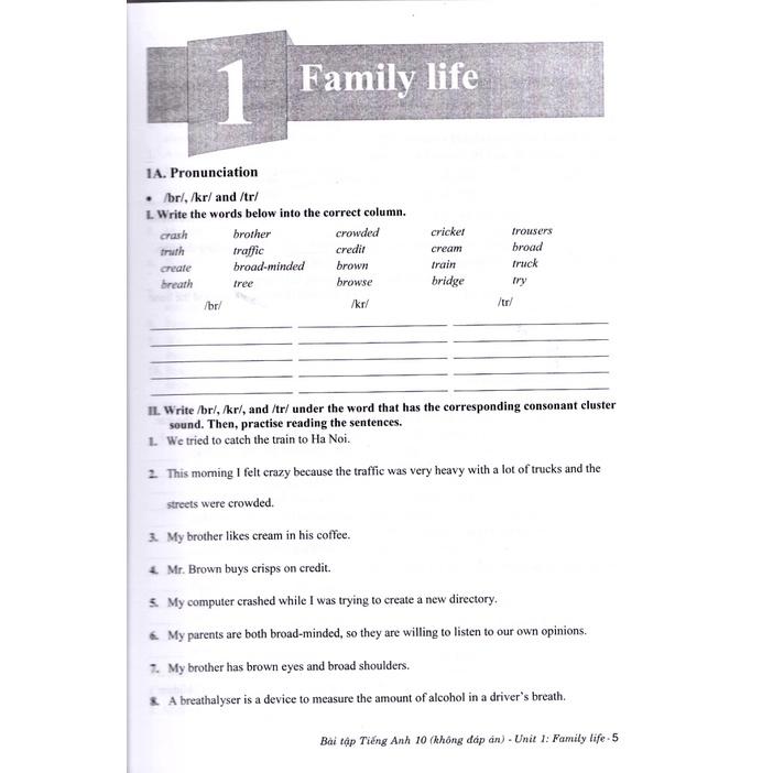 TIẾNG ANH 10 - GLOBAL SUCCESS - SÁCH BÀI TẬP - UNIT 1 - FAMILY LIFE - ĐÁP ÁN - ANSWER