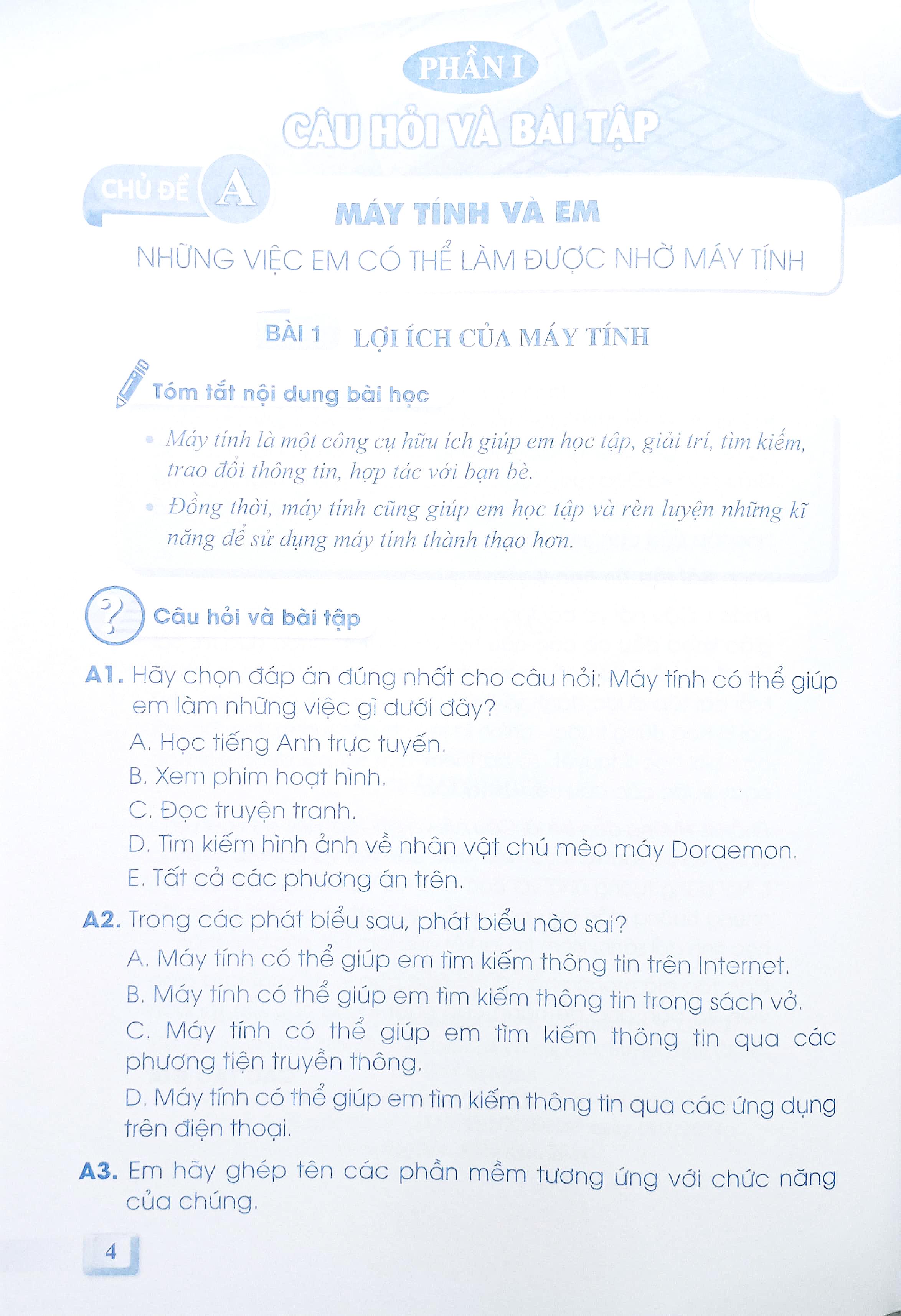 Vở bài tập Tin học Lớp 5 Bài 1: Em có thể làm gì với máy tính? - trang 5, 6, 7 | Kết nối tri thức