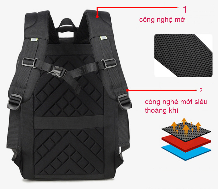 Phương pháp sản xuất: công nghệ cao Chất liệu : Vải oxfort được mã hóa SIÊU CHỐNG THẤM NƯỚC Chức năng: Không thấm nước, thoáng khí, chống mài mòn, làm sáng, chống sốc đặc biệt chống trộm cao cấp