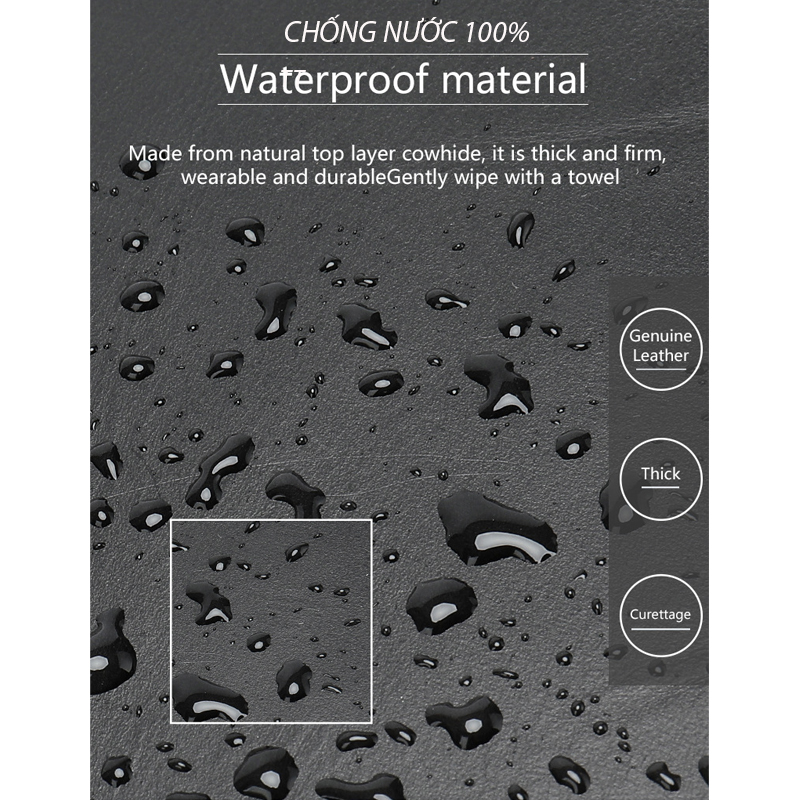 - Chất liệu da tổng hợp, làm theo kiểu da trơn siêu lì, không nổ, không bong tróc sau thời gian dài sử dụng - Khả năng chống nước, chống bám bụi vượt trội - Thiết kế sang