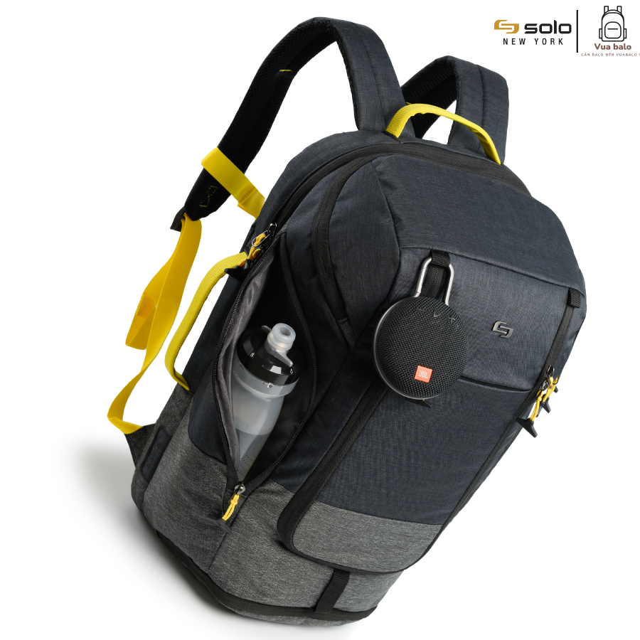 Ở 2 bên hông có thêm 2 ngăn kéo lớn, được thiết kế nổi bật bởi biểu tượng của Solo bằng kim loại đính vào sợi vải, giúp người dùng cất điện thoại hay những món đồ thường sử dụng. Khi đeo balo trên lưng, bạn có thể dễ dàng đưa tay ra sau lấy vật dụng nhanh chóng và tiện lợi.