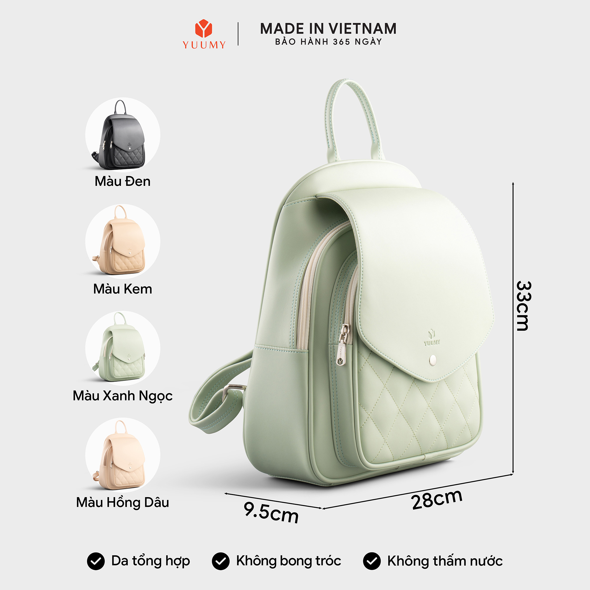 Balo Yuumy Thời trang nữ basic đựng vừa A4 Balo da YBA5