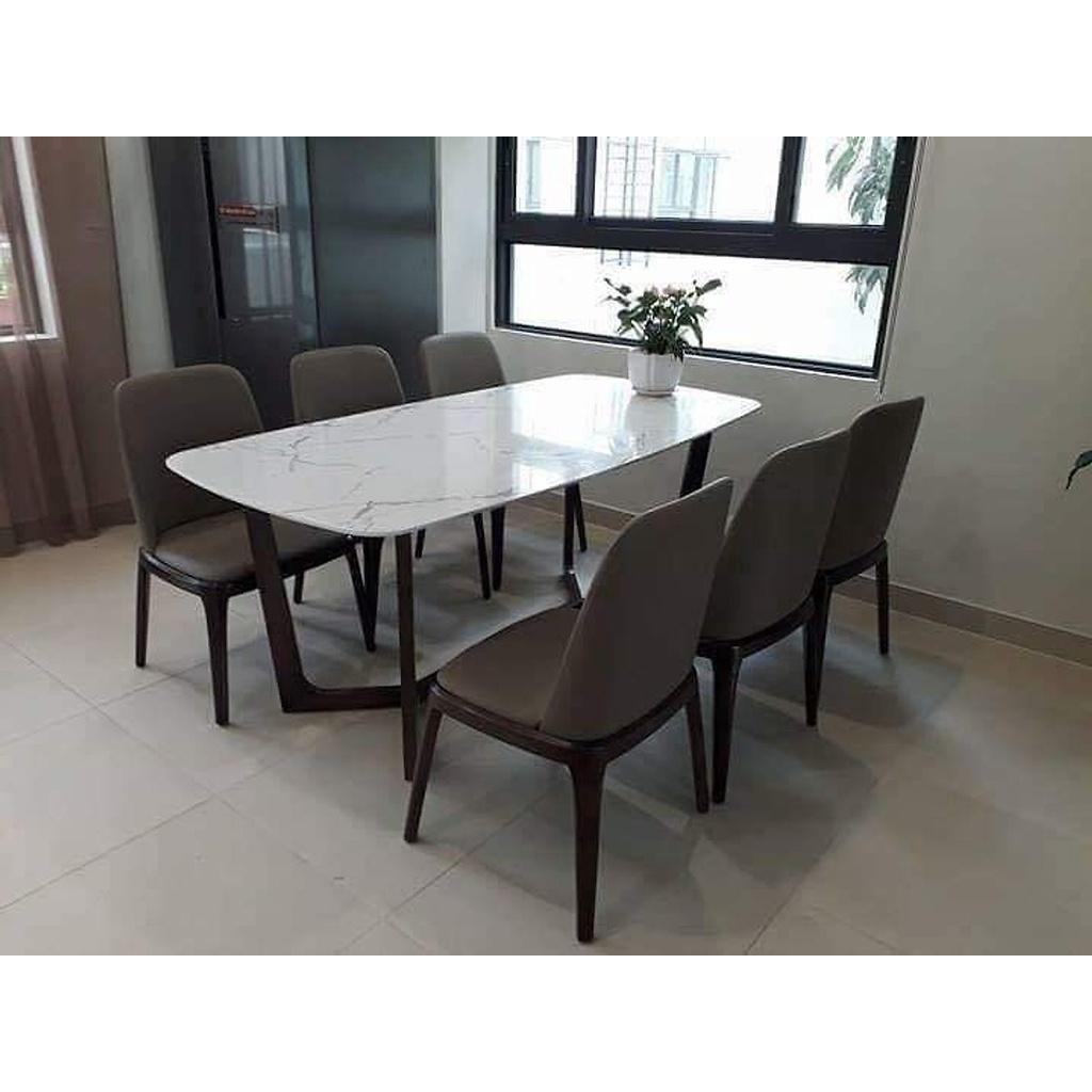 Bộ bàn ăn mặt đá ceramic nhập khẩu 6 ghế 1M6 - BÀN ĂN GIÁ RẺ Hotline: 0788.050.060