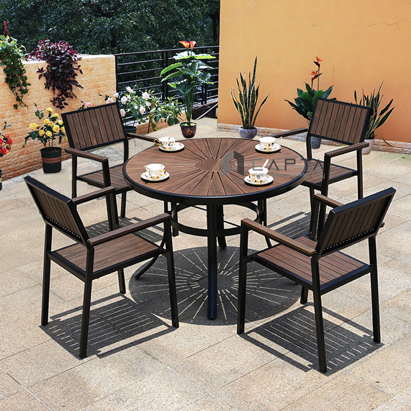 ✨Bàn ăn sân thượng tròn 1m TE2041-100A Nội thất Capta Bàn nhà hàng ngoài trời mặt gỗ nhựa polywood chân nhôm cho 4 đến 6 ghế ngồi