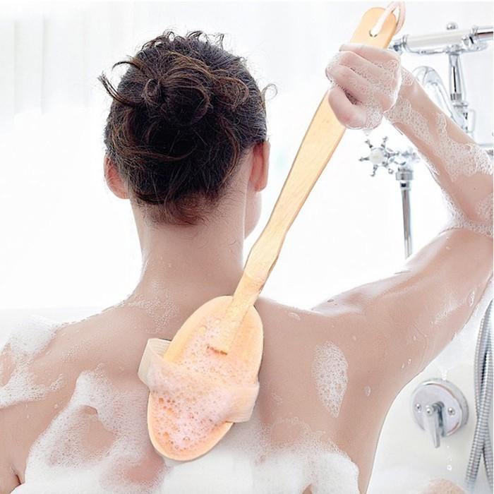 Bông Tắm Chà Lưng2 Mặt Kèm Bàn Chải Cọ mềm mịn,Cây Bông Tắm Kì Lưng Tẩy Tế Bào Chết giảm mụn lưng
