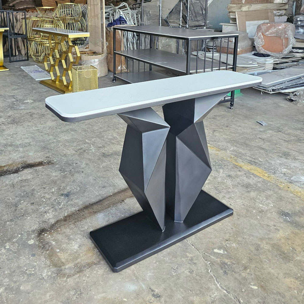 Mua tại TiktokBàn Console CSTCT064 có phần chân sắt được gia công theo hình dáng đa giác rất độc đáo và ấn tượng, thích hợp để trong các không gian sang trọng, hiện đại. Mặt bàn sử dụng chất liệu đá vân mây đẹp mắt. Bạn có thể đặt để đặt lọ hoa, sách trang trí hoặc các vật dụng trang trí khác để tạo nên một không gian trang trí ấn tượng. THÔNG TIN CHI TIẾT SẢN PHẨM :