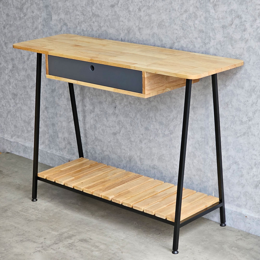 Bàn console trang trí gỗ cao su khung sắt CSTCT047 sử dụng vật liệu chính là gỗ cao su tiêu chuẩn AA dày 17mm được xử lý và hoàn thiện vân màu gỗ tự nhiên