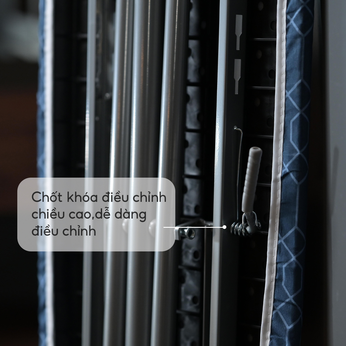 - Bàn để ủi quần áo có khung làm bằng thép bền chắc, không rung lắc khi là, ủi quần áo, khả năng chịu lực tốt.