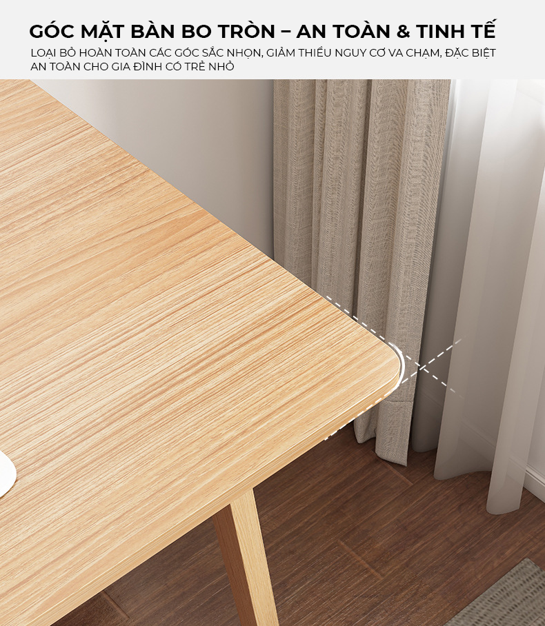Chất liệu: Gỗ MDF phủ melamine cao cấp chống xước - chân bàn gỗ tự nhiên