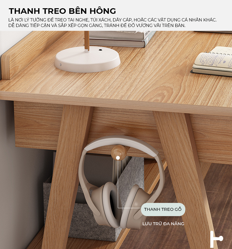 Công năng: Là mẫu bàn làm việc, bàn học giúp tiết kiệm diện tích không gian phòng