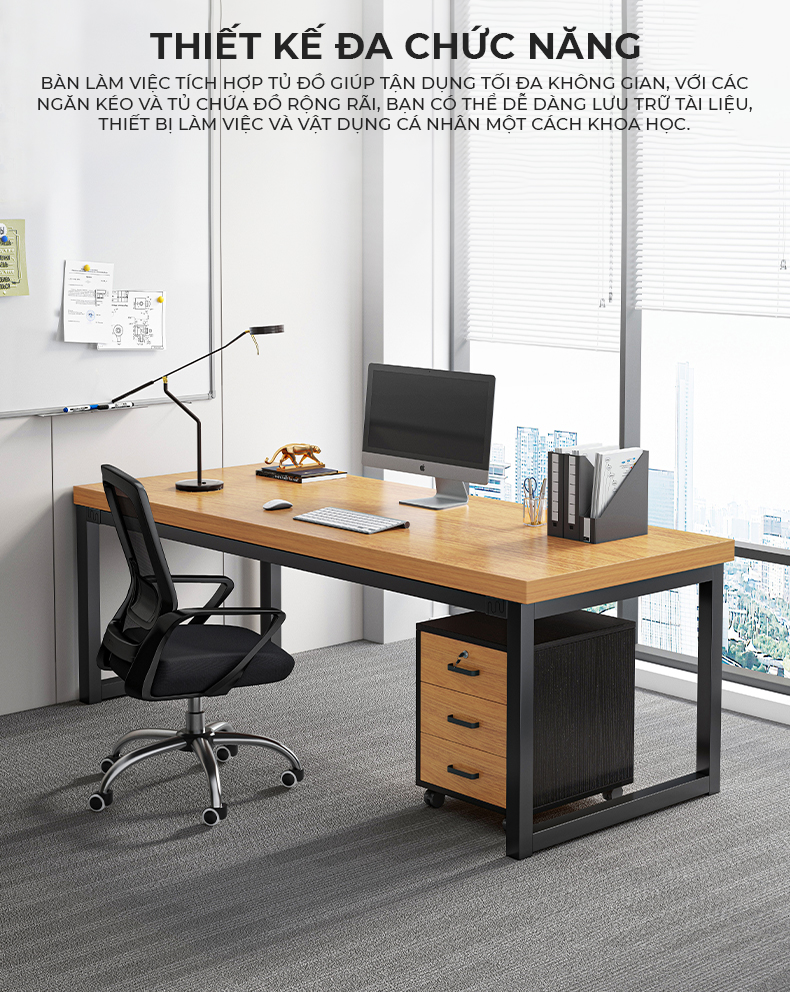 Công năng: Là mẫu bàn làm việc văn phòng có thiết kế đẹp và vững chắc giúp hoạt động làm việc dễ dàng và hiệu quả hơn