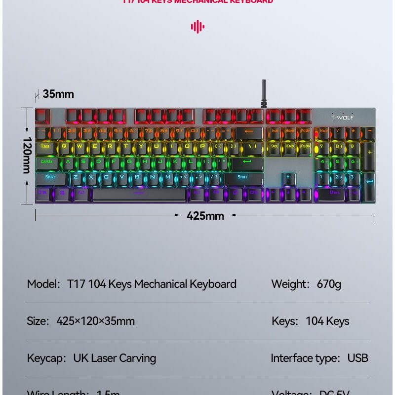Bàn phím cơ T-Wolf T17 là lựa chọn đáng để đầu tư cho hệ thống máy tính của bạn nhờ thiết kế và trải nghiệm gõ đột phá. Liên hệ ngay với T-Wolf để sở hữu bàn phím chính hãng với mức giá hấp dẫn kèm bảo hành uy tín.