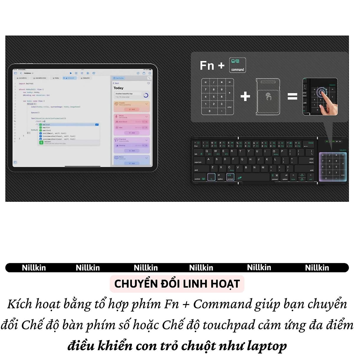 ✨Bàn phím gấp gọn di động không dây bluetooth V5.2 tích hợp trackpad & phím số hiệu Nillkin Cube Pocket - Nhỏ gọn, mỏng nhẹ, phím tắt thông minh, hỗ trợ Androids & iOS, gõ thoải mái cho iPad cho iPhone, máy tính bảng, cho macbook, laptop - hàng nhập khẩu