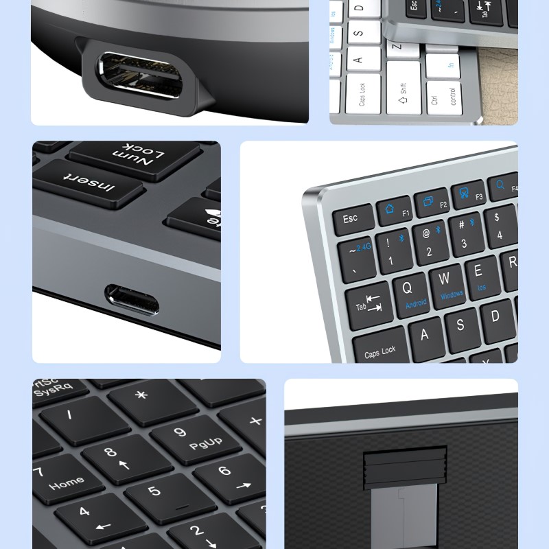 Bàn phím Bluetooth rời gấp gọn tương thích Windows, Mac, iOS và Android kết nối điện thoại, laptop, máy tính bảng - Chất liệu: ABS - Kích thước: 282x94,5x8,8mm - Kích thước gấp: 141x94,5x17,6mm -