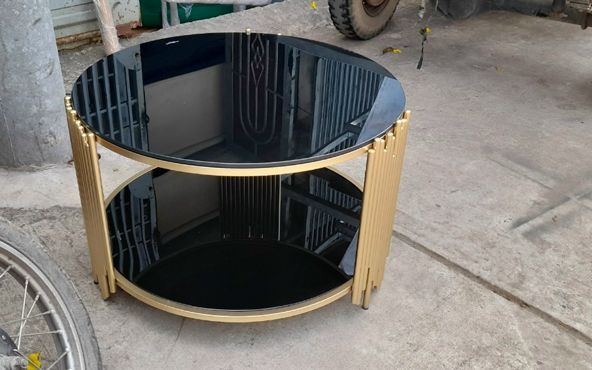 bàn trà khung inox 304 mạ vàng 2 mặt kính cường lực #thegioibantra #banan