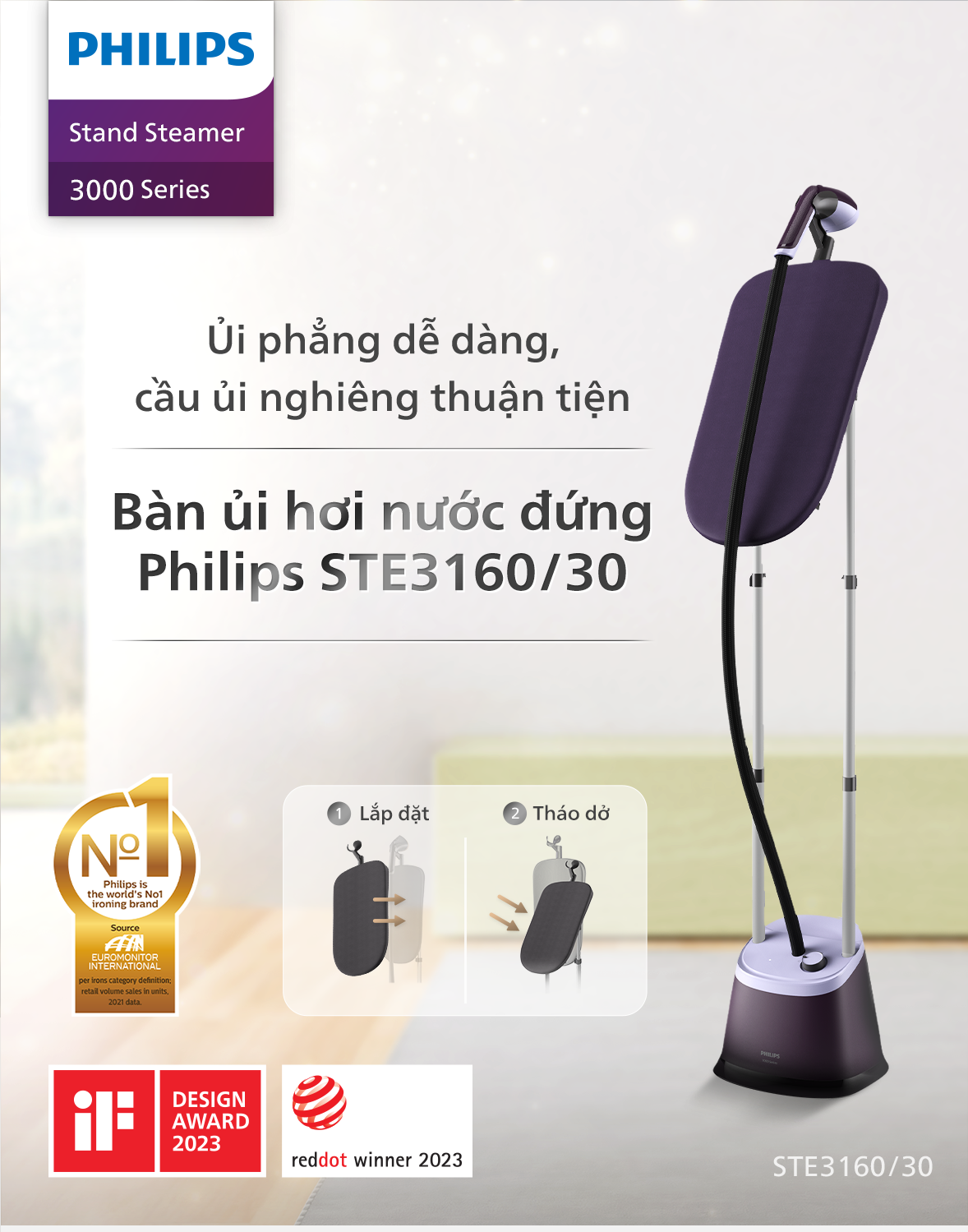 Mua tại Tiktok- - Tích hợp tấm ván ủi tiện lợi. - Được thiết kế để linh hoạt và tiện lợi. - Công nghệ ExtraHygiene loại bỏ đến 99,99% vi khuẩn trong 1 phút* - Ba mức