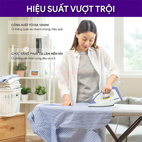 - Công suất mạnh mẽ lên đến 1300 W, giúp ủi thẳng quần áo nhanh chóng và hiệu quả