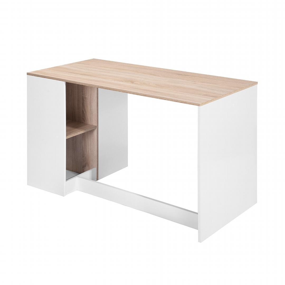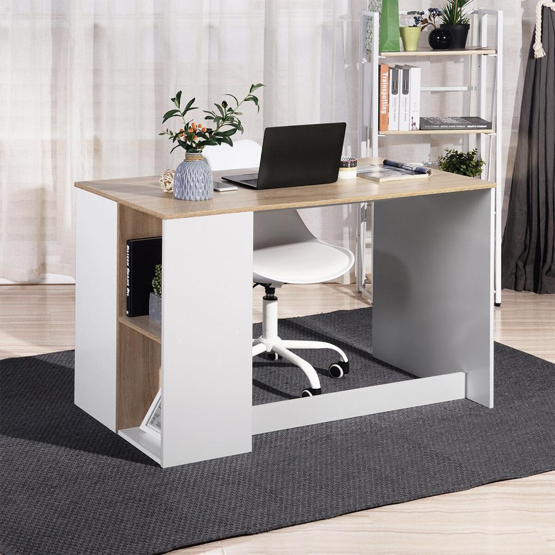 - Tên sản phẩm: Bàn làm việc kèm ngăn kéo và kệ để đồ - Chất liệu: Gỗ MDF phủ melamine cao cấp chống xước - chân bàn gỗ tự nhiên - Màu sắc: Vân gỗ sồi - Kích thước: 80/120 x 55 x 82cm (dài x rộng x cao) - Công năng: Là mẫu bàn làm việc, bàn học giúp tiết kiệm diện tích không gian phòng