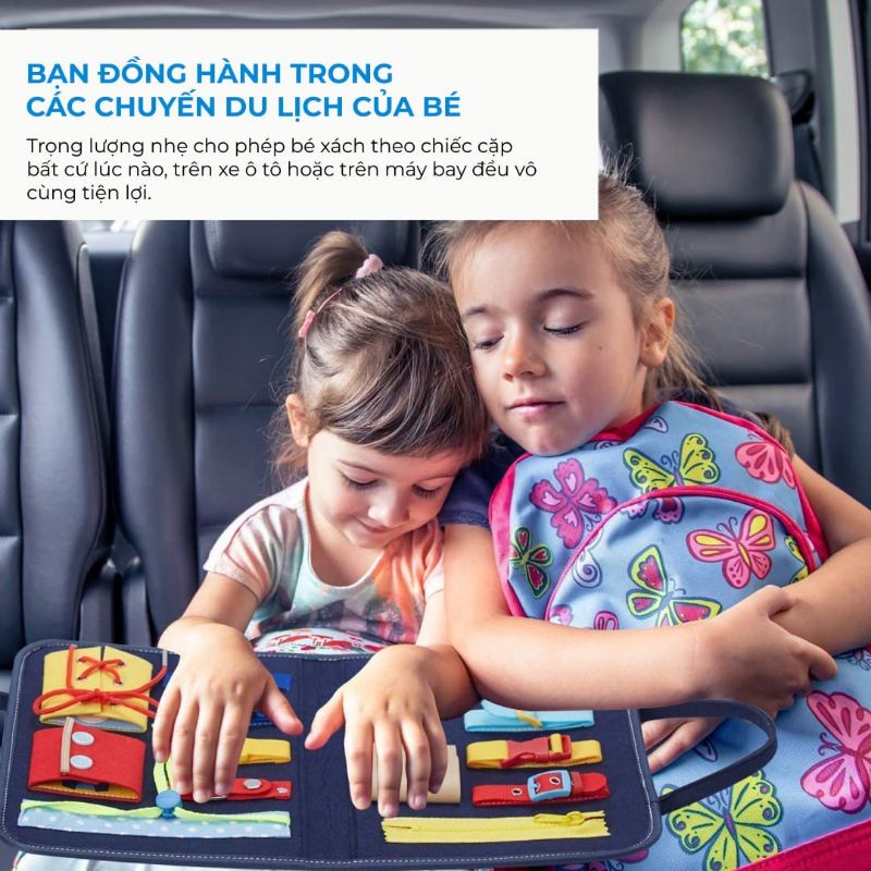 Bảng bận rộn busy board hình chiếc cặp bằng vải đồ chơi montessori cho bé 1-3 tuổi cao cấp