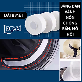 THÔNG TIN SẢN PHẨMChất liệu: Vải không dệt.Kích thước miếng dán: Cuộn dài 8m (Rộng 2.3cm).Trọng lượng: 40gr.Màu sắc: Trắng và Đen.CÔNG DỤNGGiúp thấm hút mồ hôi ở vùng cổ áo/ tay áo/ vành nón để...