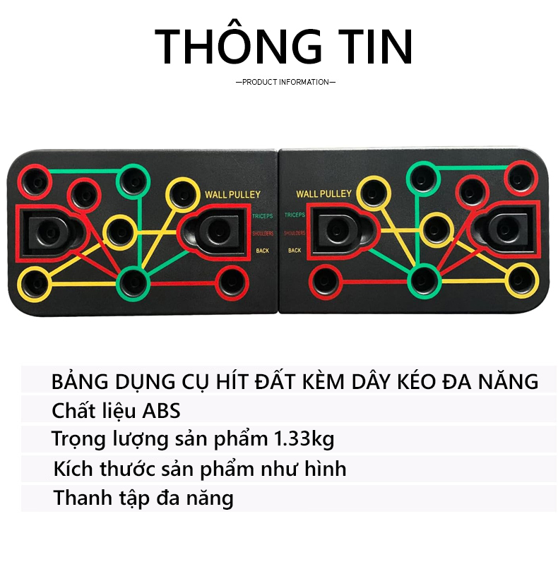 Mua tại TiktokBẢNG DỤNG CỤ HÍT ĐẤT KÈM DÂY KÉO ĐA NĂNG CLEACCO Bảng nhựa ABS có độ bền cao, trọng tải lên tới 200 kg Thiết bị tập luyện tập theo màu sắc đa dạng Băng cao su tay cầm thoải mái Dễ dàng tháo lắp mang theo Thực hiện được nhiều động tác khác nhau. MÔ TẢ SẢN PHẨM: Đây là một bảng dụng cụ có thể tháo rời giúp bạn tập thể dục mọi lúc mọi nơi. Cho dù bạn đang ở nhà, tại văn phòng, hoặc đi công tác, bạn có thể sử dụng nó để tập thể dục. ĐẶC ĐIỂM:
