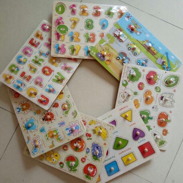 bảng ghép hình núm gỗ cho bé từ 15 tuổi giúp bé học chữ số, con vật, tư duy hình ảnh. #dochoitreem