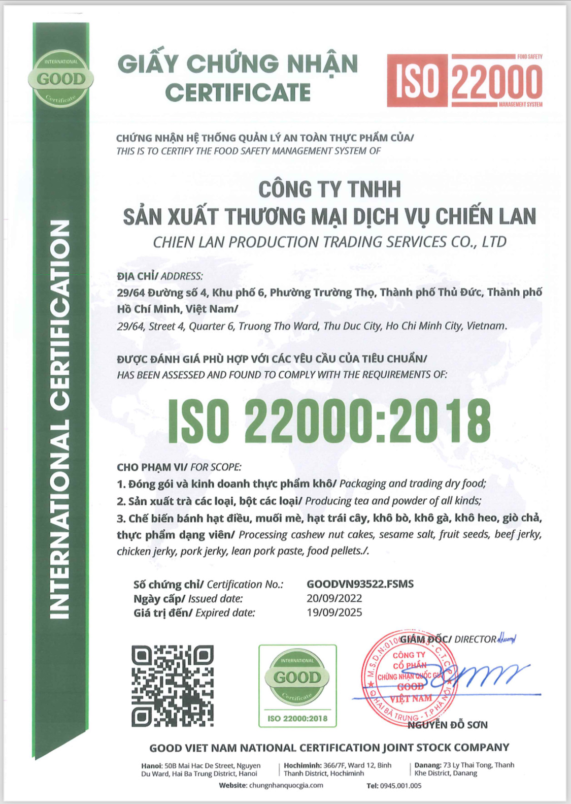Xuất xứ : Việt Nam. Ngày sản xuất: In trên bao bì Trọng lượng: In trên bao bì Thương Hiệu SK FOOD Sản phẩm có giấy chứng nhận an toàn vệ sinh thực phẩm.