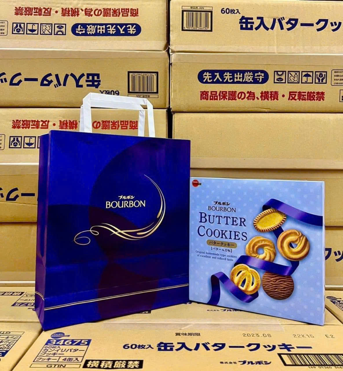 thêm Bánh quy bơ bourbon nhật hộp thiếc tròn sang sịn lại ngon kho quên nha biếu tặng hoặc lên set