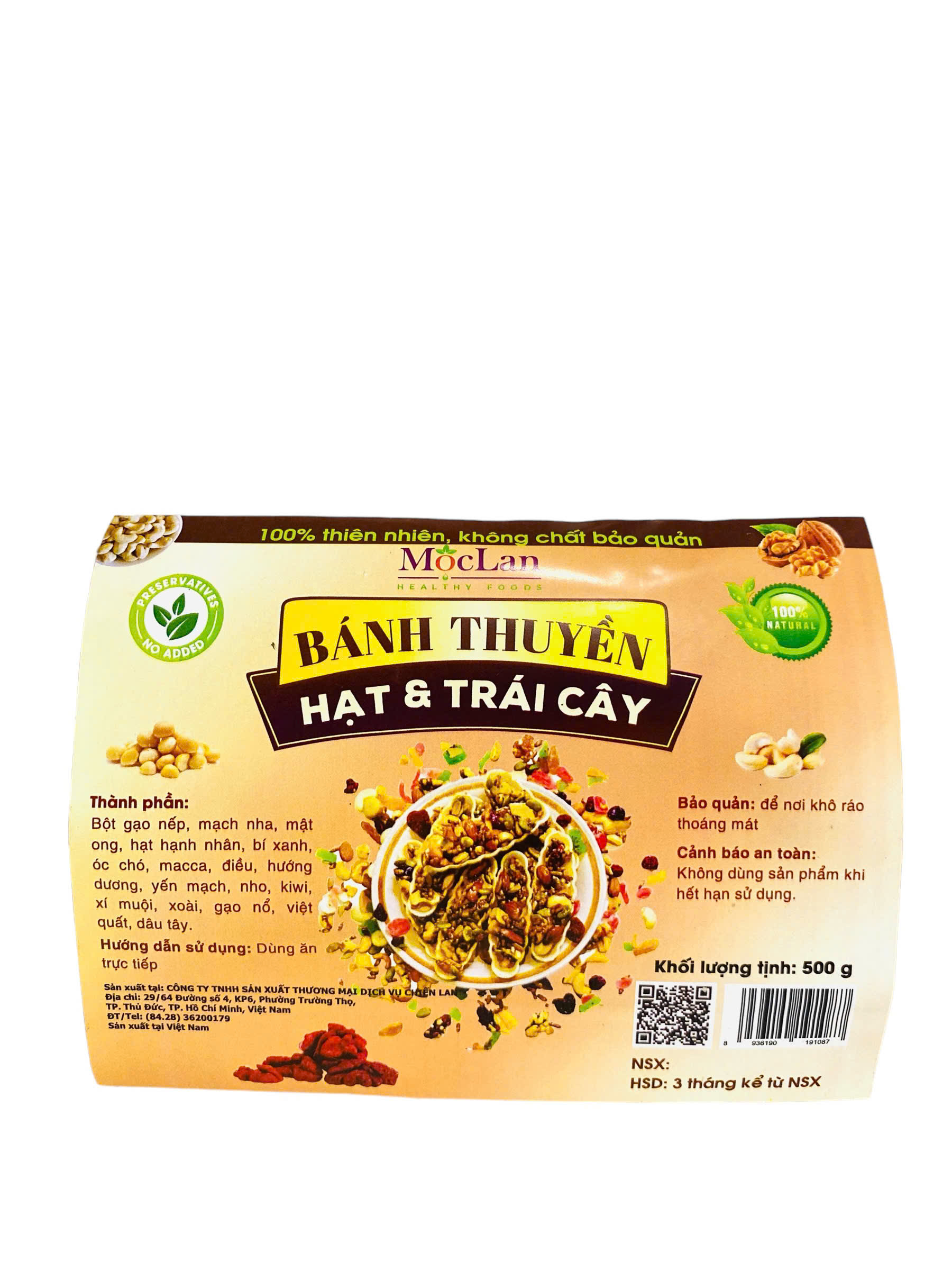 - THÀNH PHẦN BÁNH THUYỀN HẠT. Bột gạo, mạch nha, mật ong, hạnh nhân, bí xanh, óc chó, mắc ca, điều, hướng dương, yến mạch, nho, kiwi, xí muội, xoài, gạo nổ, việt quất, dâu tây