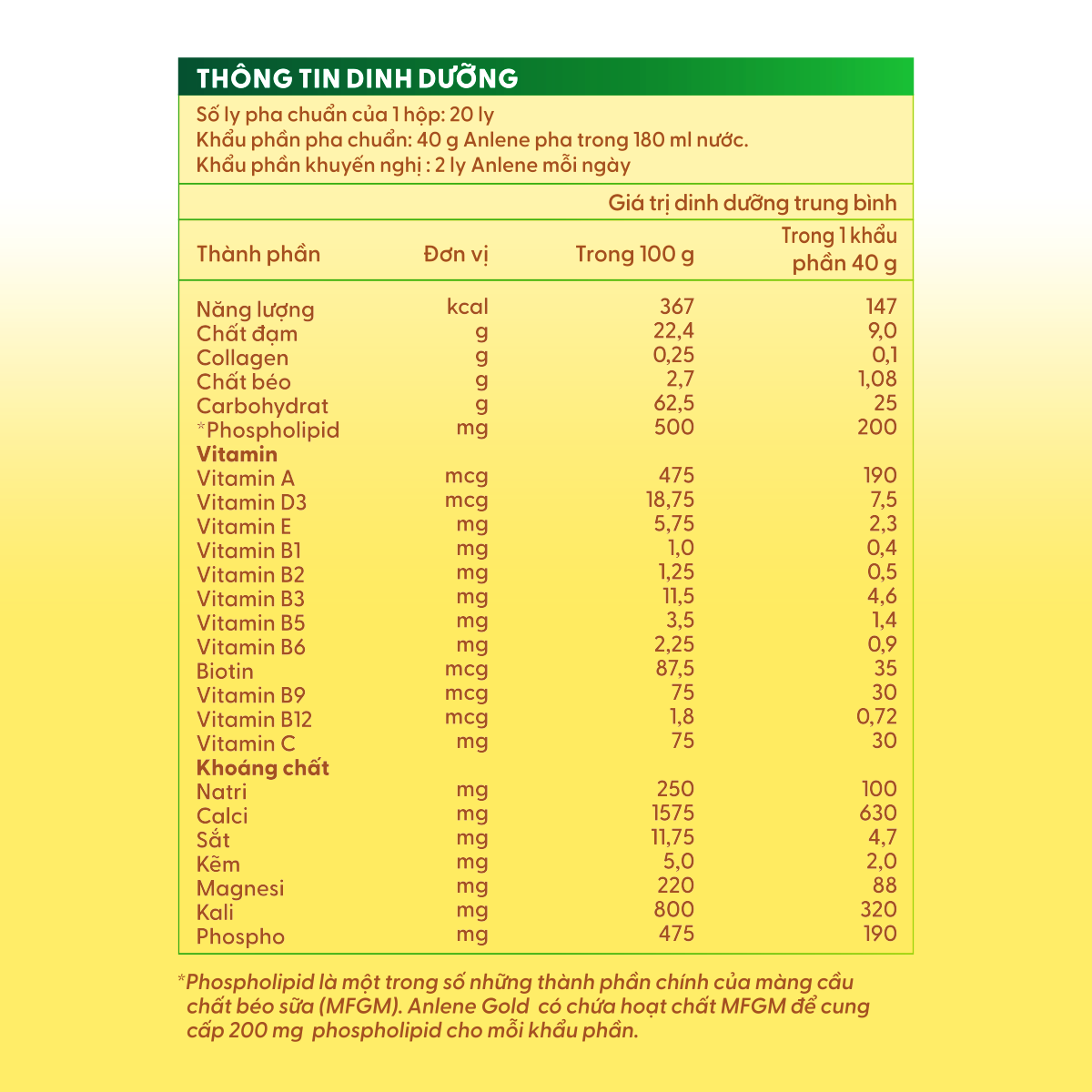 SỮA ANLENE GOLDAnlene Gold là sản phẩm sữa chứa hệ dưỡng chất MovePro cung cấp dinh dưỡng tăng cường với hoạt chất MFGM được KIỂM NGHIỆM LÂM SÀNG giúp cơ thể thêm linh hoạt và