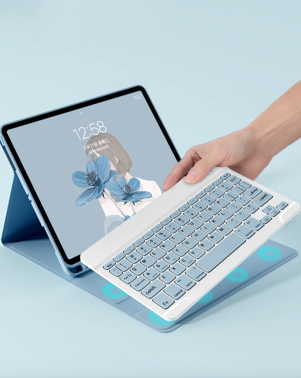 Bao da iPad Smart Keyboard kèm bàn phím Bluetooth. 1: Dành cho iPad. Giải pháp bàn phím Bluetooth 2: Khoảng cách hiệu quả 10 mét 3: Thời gian chờ: 300 giờ 4: Giờ làm việc