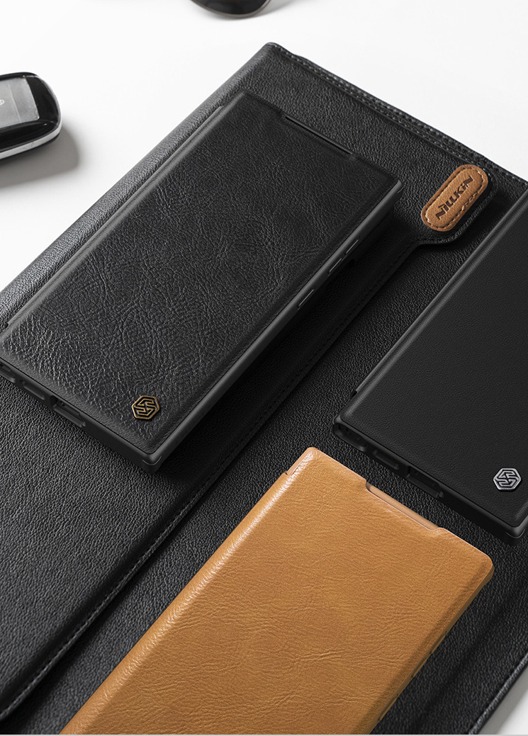 Bao da SamSung Galaxy S24 Ultra chính hãng Nillkin Qin Prop Leather có phần viền bằng silicone mềm bảo vệ 360° cho điện thoại.