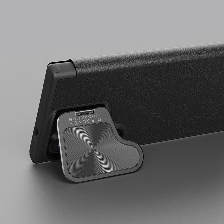Phần camera có nắp lật để bảo vệ cụm camera khỏi trầy xước, bụi bẩn. Phần nắp này cũng là chân chống giúp dựng bao da để xem video thuận tiện hơn.