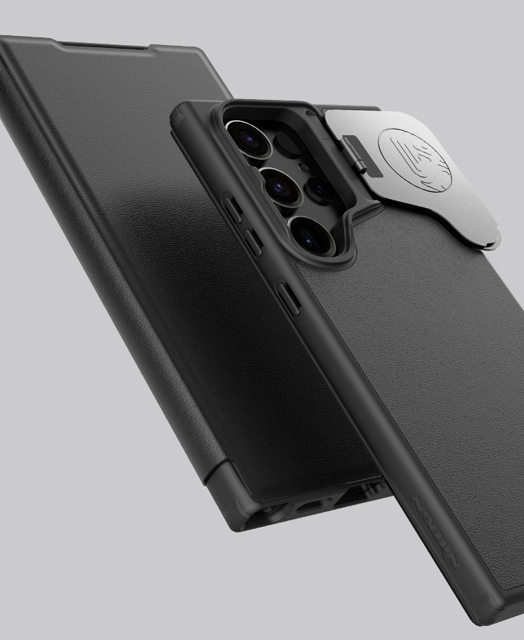 ✨Bao da cho SamSung Galaxy S24 Ultra chính hãng Nillkin Qin Prop Leather có ngăn cài thẻ ATM, thẻ chung cư, chống sốc, có nắp đậy camera sau và chân chống - Hàng chính hãng