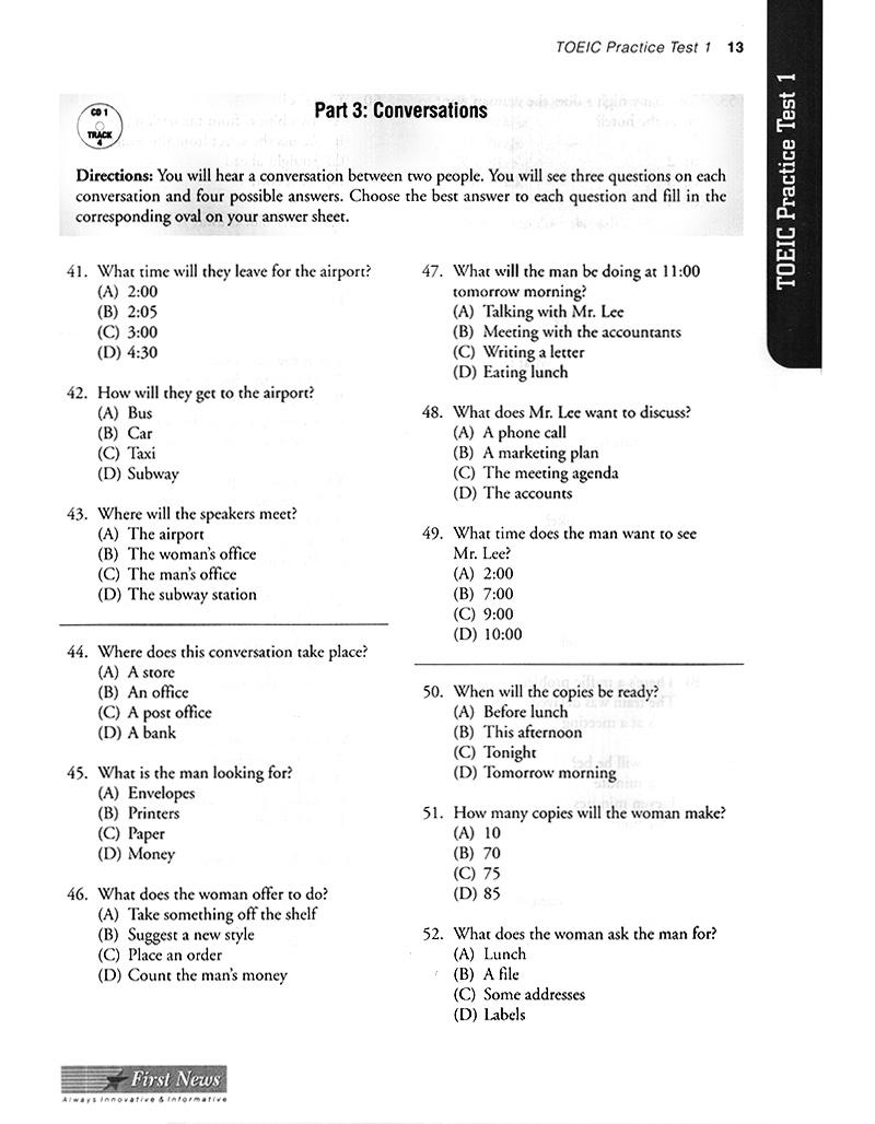 01 Barron TOEIC Practice Exams Listening Test 1 Part 1 2 3