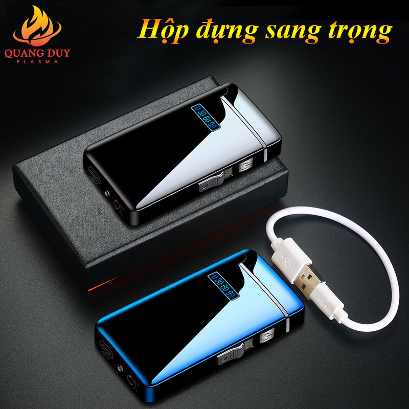 - Sản phẩm gồm: 1 bật lửa plasma, 1 dây cáp sạc, 1 hộp đựng sang trọng.