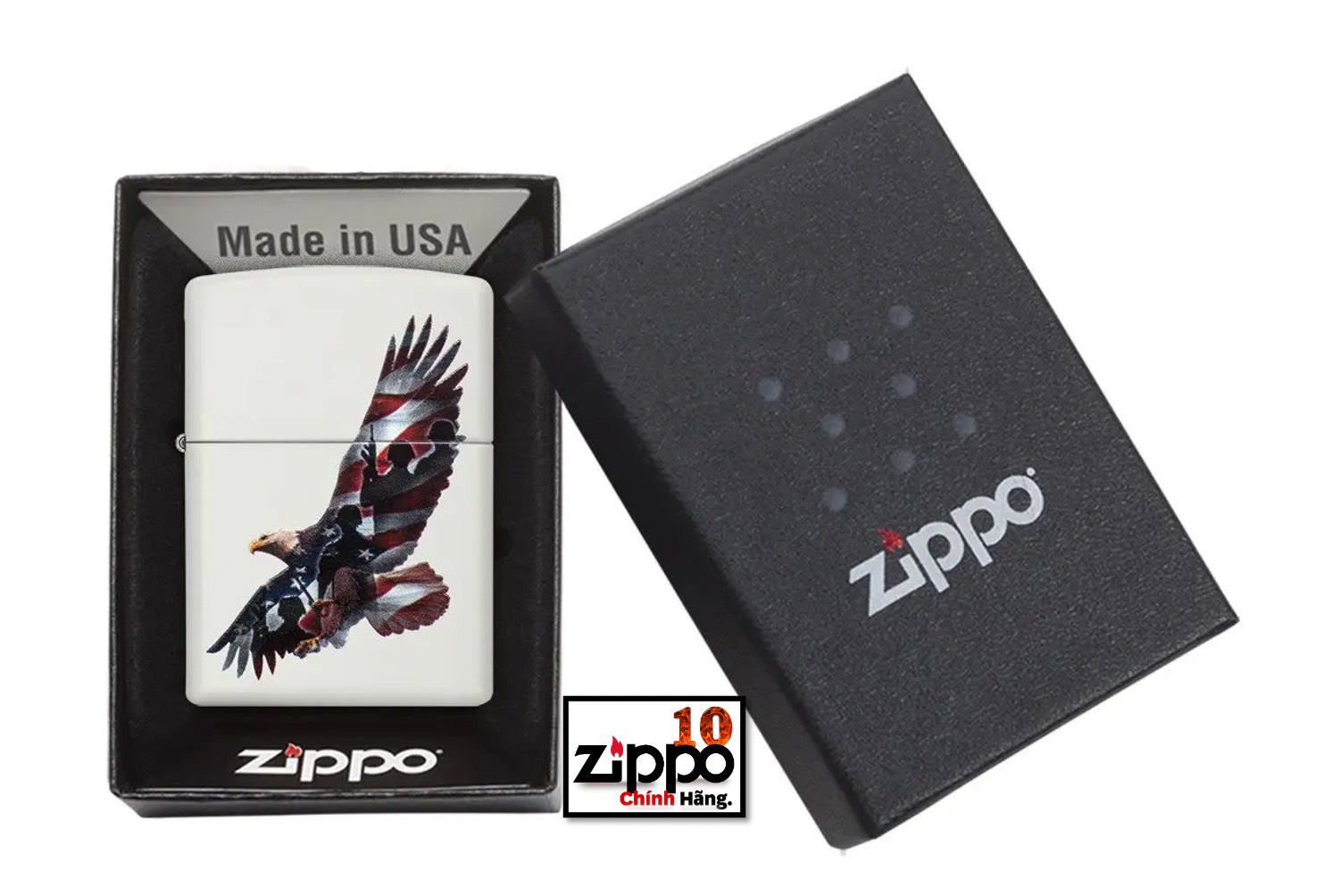 Bật lửa Zippo chính hãng Made in USA 100% Âm thanh mở nắp đặc trưng với tiếng "click" Chống gió tốt trong môi trường gió mạnh, ngay cả trước quạt máy Fullbox 100% trong hộp