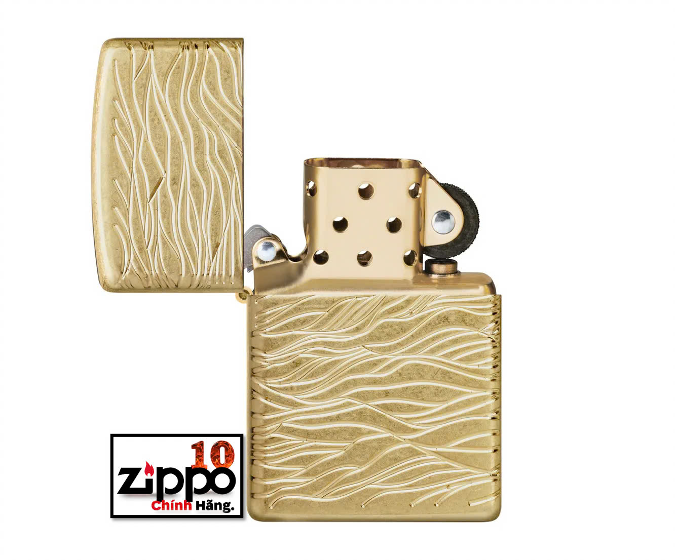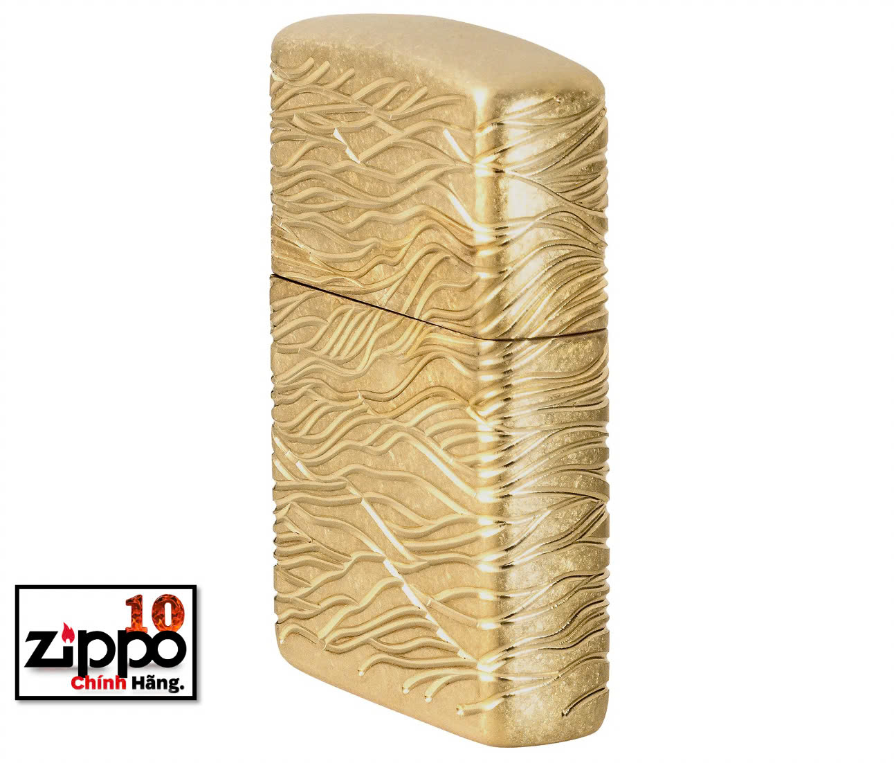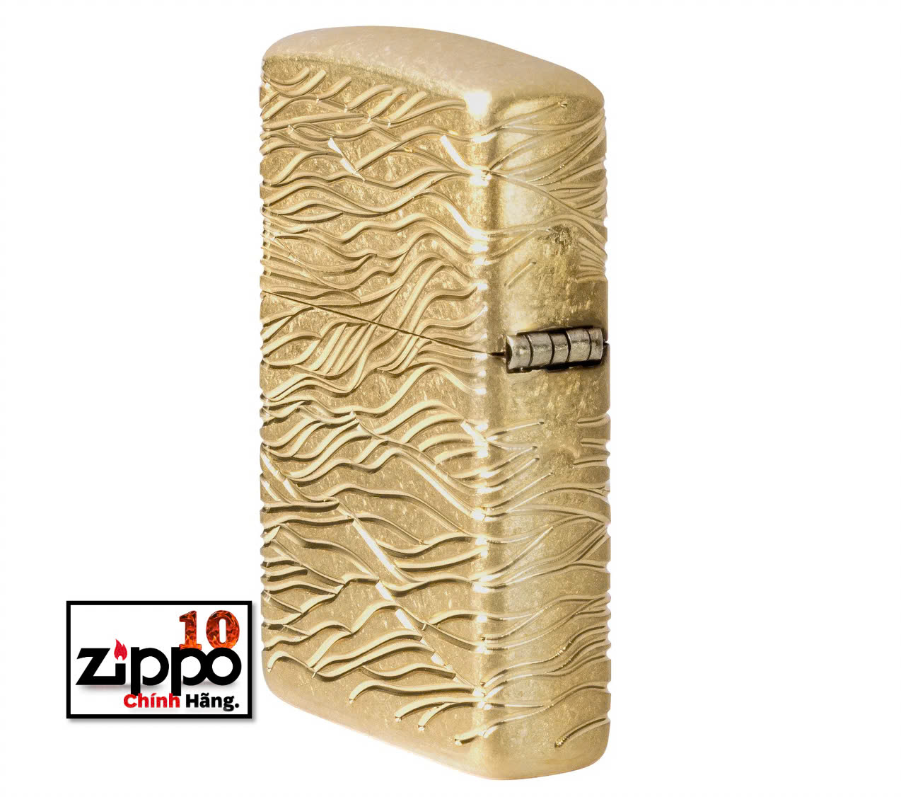 - Bật Lửa Zippo 1652b Slim Venetian Brass với thiết kế vỏ bằng chất liệu kim loại mang đến cho zippo trọng lượng nhẹ nhàng, cùng với sắc ánh bạc bao phủ kiêu sa. -