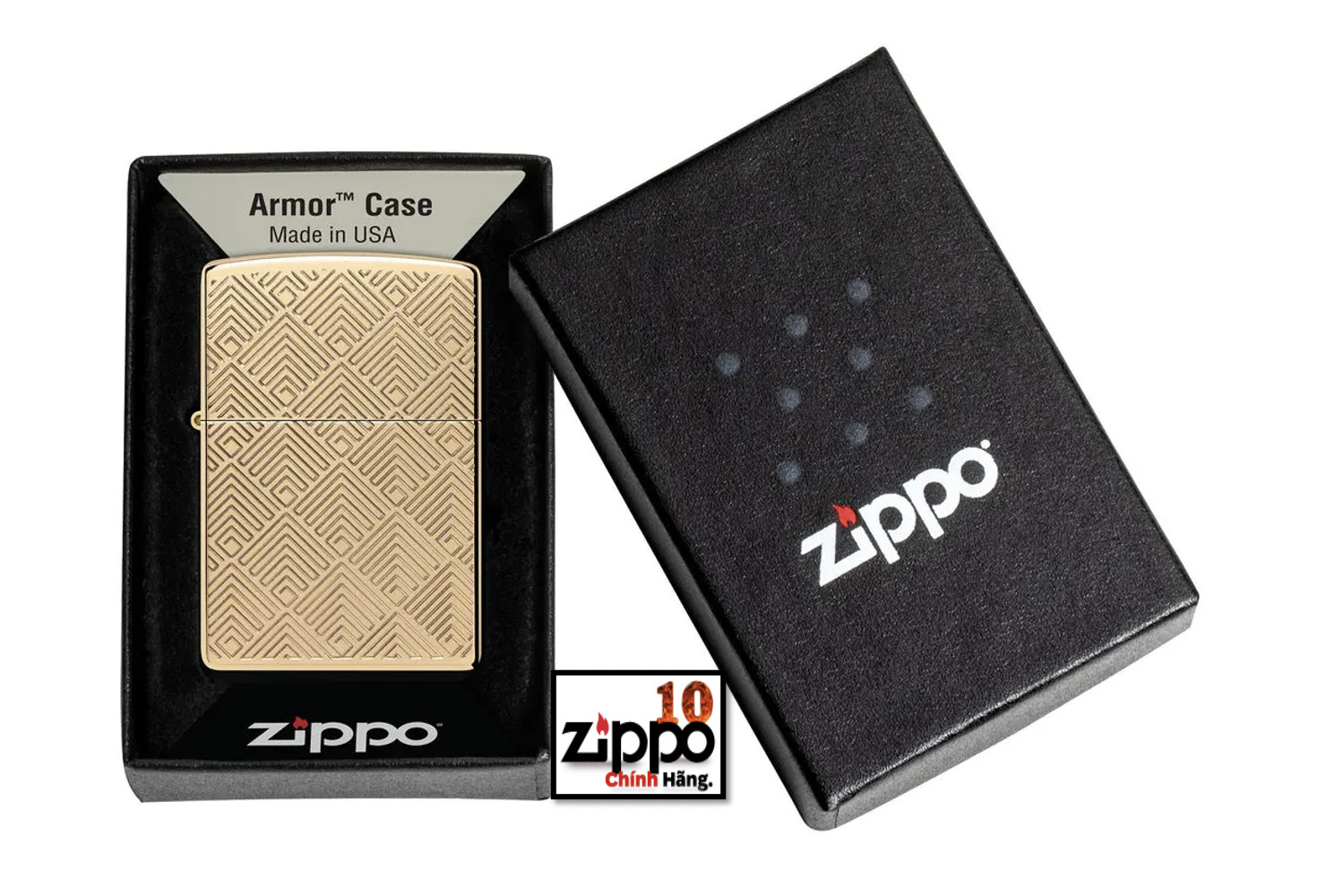 Thiết kế lộng lẫy trên chiếc bật lửa Armor High Polish Brass này tạo nên một vật kỷ niệm tinh xảo và trường tồn với thời gian. Hình khắc phức tạp, sang trọng đạt được với quy trình khắc Deep Carve của Zippo. Được đóng gói trong một hộp đựng dạng quà tặng. Để tối ưu hiệu suất, hãy dùng nhiên liệu bật lửa của Zippo.