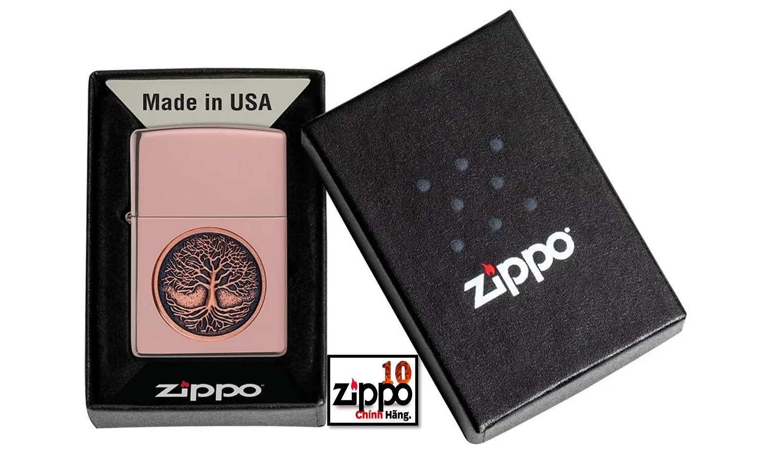Cây Sự sống như một lời nhắc nhở về mối liên hệ phổ quát của chúng ta với Đất Mẹ, và sự phụ thuộc của chúng ta vào Mẹ để phát triển và sinh sôi. Thiết kế này hiển thị Cây sự sống trên một biểu tượng hình tròn và được ốp nổi trên chiếc bật lửa mạ Vàng hồng bóng sang trọng. Được đóng gói trong một hộp đựng dạng quà tặng. Để tối ưu hiệu suất, hãy dùng nhiên liệu bật lửa của Zippo.