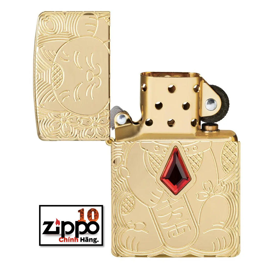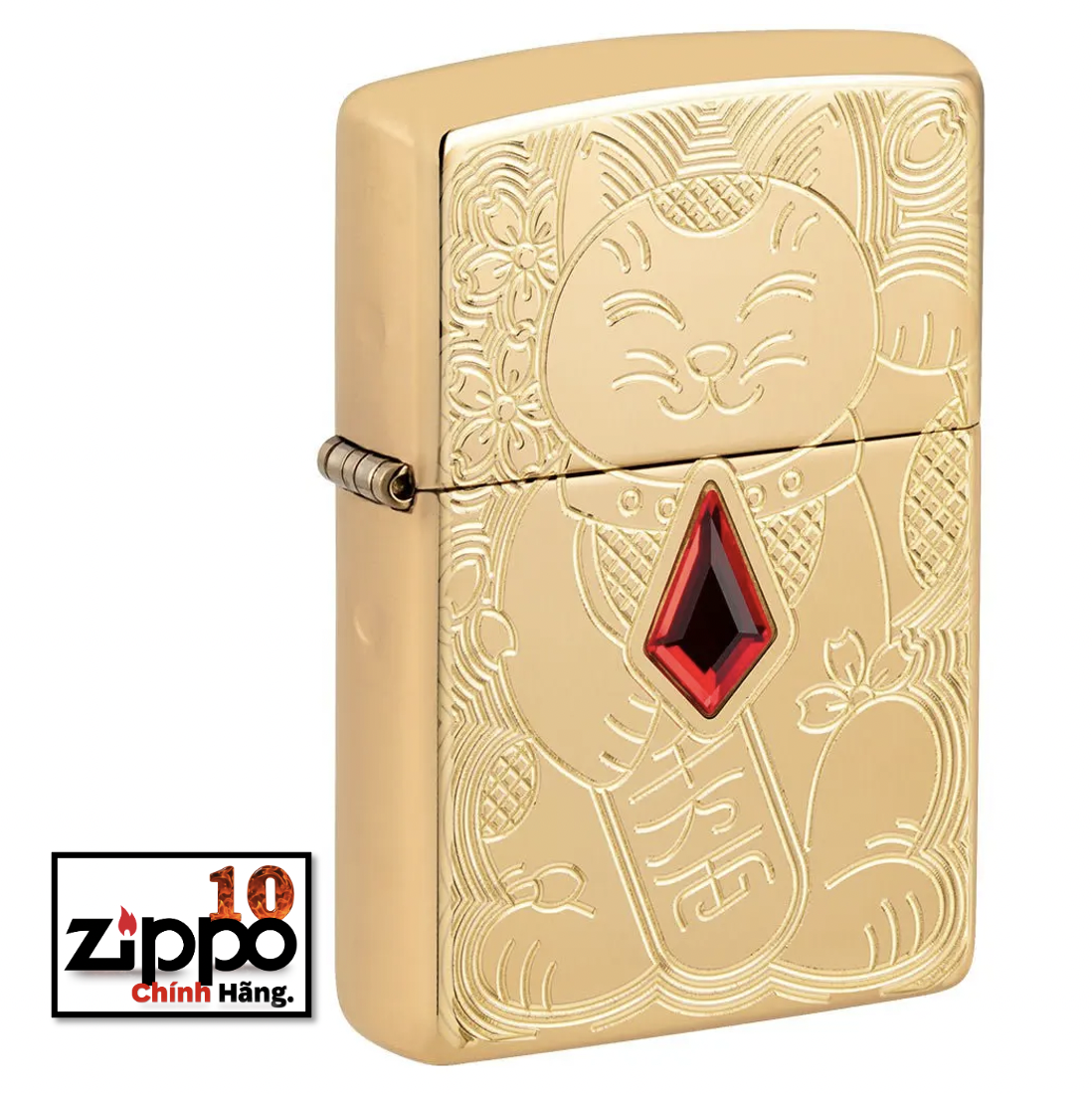 Được công nhận ở khắp mọi nơi như một người mang lại may mắn, thiết kế Con Mèo may mắn trên chiếc bật lửa Armor High Polish Brass này đạt được bằng cách sử dụng quy trình khắc sâu của Zippo và được đính kèm một viên đá màu đỏ nhìn rất sang trọng và nổi bật trên bề mặt bật lửa Zippo. Được đóng gói trong một hộp đựng dạng quà tặng. Để tối ưu hiệu suất, hãy dùng nhiên liệu bật lửa của Zippo.