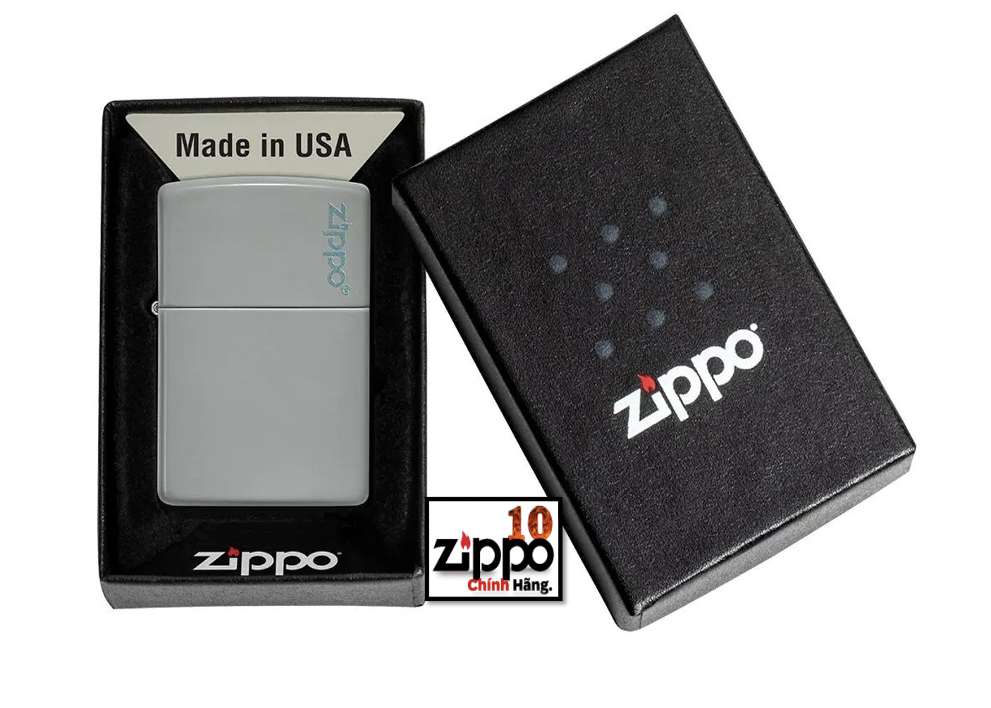 Bật lửa Zippo chính hãng Made in USA 100% Âm thanh mở nắp đặc trưng với tiếng "click" Chống gió tốt trong môi trường gió mạnh, ngay cả trước quạt máy Fullbox 100% trong hộp