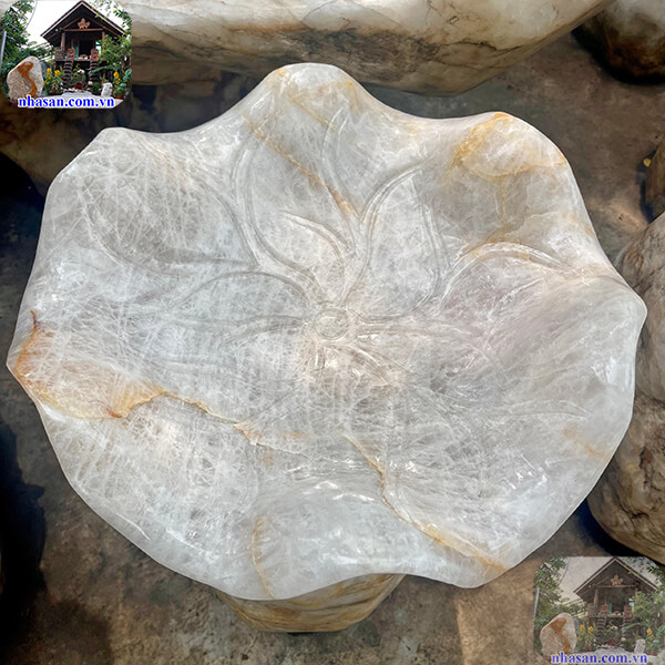 - Nhà Sàn Tây Nguyên là đơn vị chuyên gia công chế tác bát sen thả hoa đá thạch anh tự nhiên với nhiều mẫu mã và kích thước đa dạng phù hợp cho mọi không gian sống và làm việc. Sản phẩm đá thạch anh của Nhà Sàn được khai thác từ vùng Tây Nguyên Việt Nam, có chất lượng tốt và giá thành hợp lý. Tạo sự sang trọng đẳng cấp cho không gian sống