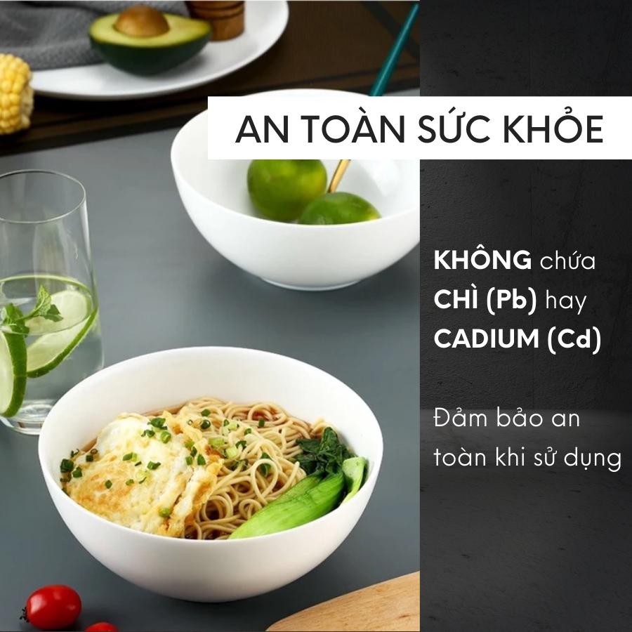 - Quy cách : 6 Cái/ bộ. - Kích thước: 20 cm. - Chất liệu: Thuỷ tinh opal, cường lực, kháng vỡ. - Có thể sử dụng trong lò vi sóng và máy rửa bát.
