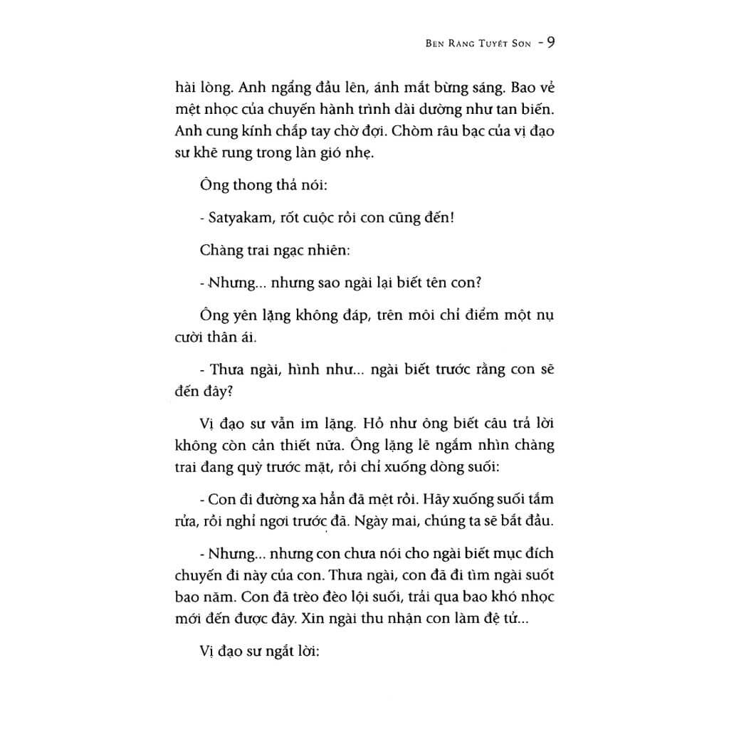 Mua tại TiktokThông tin chi tiết Tên Nhà Cung Cấp FIRST NEWS Tác giả Nguyên Phong NXB NXB Thế Giới Năm XB 2023 Ngôn Ngữ Tiếng Việt Trọng lượng (gr) 350 Kích Thước Bao Bì 20.5 x 14.5 cm Số trang 320 Hình thức Bìa Mềm Bên Rặng Tuyết Sơn – Hành Trình Khám Phá Tâm Linh Từ Vùng Núi Himalaya Sách Bên Rặng Tuyết Sơn của tác giả Nguyên Phong là tác phẩm nổi bật trong bộ sách khoa học tâm linh của dịch giả Nguyên Phong. Cuốn sách mở ra cho bạn đọc một hành trình sâu sắc về tâm linh và bản ngã, bắt nguồn từ vùng núi Himalaya huyền thoại cùng đồng bằng Ấn Độ linh thiêng. Đây là một câu chuyện mang đầy giá trị tinh thần, giúp bạn hiểu được sức mạnh làm chủ tâm linh, cũng như làm chủ vận mệnh cuộc đời mình. Hành Trình Tâm Linh Qua Góc Nhìn Câu Chuyện Satyakam Câu chuyện kể về nhân vật Satyakam, người đến thung lũng Saraswati để tìm kiếm bậc đạo sư chân chính và học hỏi con đường giác ngộ. Điều kỳ diệu là vị đạo sư già đã biết rõ tên và mục đích của Satyakam ngay khi anh chưa kịp thốt lời. Qua những bài học đặc biệt, Satyakam được hướng dẫn quên đi thời gian, hòa mình với những âm thanh của vũ trụ như tiếng lá rơi, tiếng gió thổi và tiếng nước reo, từ đó thanh lọc tâm hồn và tìm thấy sự bình yên nội tại. Giá Trị Tâm Linh Và Những Bài Học Sâu Sắc Trong Cuốn Sách