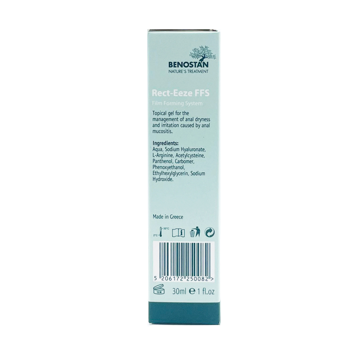 Benostan Nature's Treatment Rect-Eeze FFS (Hộp chứa một tuýp 30 ml, một vòi nhựa) có thương hiệu và được sản xuất bởi Benostan Health Products S.A., có nguồn gốc từ Hy Lạp.